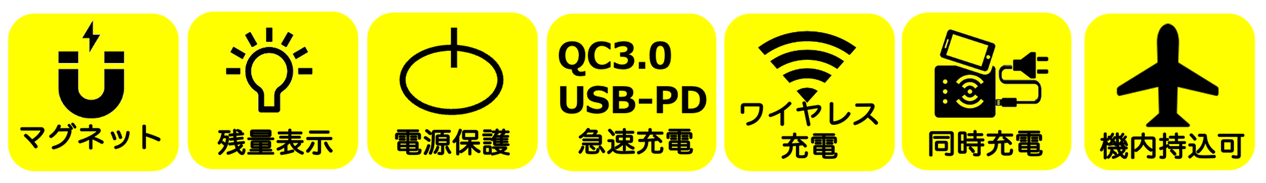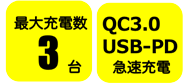 | USB-A 出力 | 5V/3A,9V/2A ,12V/1.5A (QC3.0 18W) |