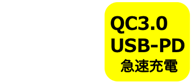 急速ケーブル充電はUSB Type-C PD,QC3.0をサポートしております。