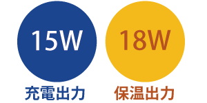 保温出力は最大18Wと保温を保ち温めも可能です。