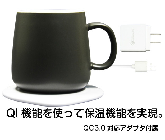 Qi充電機能はもちろん、専用マグカップやスチール缶での飲み物を保温することが可能です。